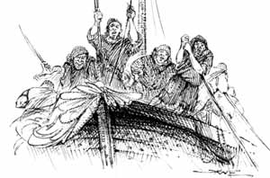 In het eerste deel probeerden we ons een voorstelling te maken van de Friese kogge in de vroege Middeleeuwen. Daarbij baseerden wij ons voornamelijk op vroege vondsten en afbeeldingen op munten, die waarschijnlijk door Friezen in de handelsplaats Haithabu zijn geslagen. Maar er is een grote tijdspanne tussen deze munten uit het begin van de negende eeuw en de opgegraven resten van koggen uit de twaalfde eeuw. In dit tweede deel gaan we op zoek naar het voorkomen van dit scheepstype in de geschreven bronnen, die de tussenliggende periode kunnen overbruggen. Daarbij brengen we de koggen in verband met een militaire scheepsdienst, de koggenorganisatie, die naar deze vaartuigen genoemd is. En we bezien de rol van Deense heersers bij de introductie van deze scheepsdienst in de Friese kustlanden. de illustraties zijn van Arne Zuidhoek Een ingekorte versie van dit artikel is te vinden op deze pagina |