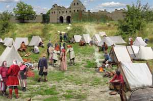 Halverwege de achtste eeuw voeren Noormannen, voornamelijk Zweedse kooplieden, met hun schepen over de Oostzee naar de Baltische kusten. Via rivieren en meren trokken zij verder landinwaarts naar het oosten. Daar vergaarden deze avonturiers door handel met de Oost-Slavische en Fins-Oegrische bevolking pelzen, slaven, was en honing. Soms eisten deze Varjagen, zoals ze door de plaatselijke bevolking genoemd werden, ook tribuut die in de vorm van pelzen moest worden opgebracht. Langs deze handelsroutes stichtten de Zweedse pioniers handelsposten in bestaande Slavische nederzettingen. Al snel werd de voornamelijk Oost-Slavische bevolking in deze nederzettingen overheerst door de nieuwkomers die, afgeleid van de Oudnoordse naam voor roeier, Roes (of Rus) genoemd werden. De naam van dit Zweedse volk dat zich door roeiers voortbewogen schepen typeerde, zou op den duur overgaan op die van het land Rusland. Met de huidige verstoorde verhouding tussen Rusland en Oekraïne ligt de rol van Kiev (of Kyiv) als de geboorteplaats van een rijk dat zou uitgroeien tot het Russische Rijk politiek gevoelig. Wel delen Russische en Oekraïense nationalisten het standpunt dat dit rijk door de Slaven gesticht is. Daarmee staan ze lijnrecht tegenover de zienswijze van met name Zweedse onderzoekers die stellen dat de basis van Rusland door de Noormannen gelegd werd. |